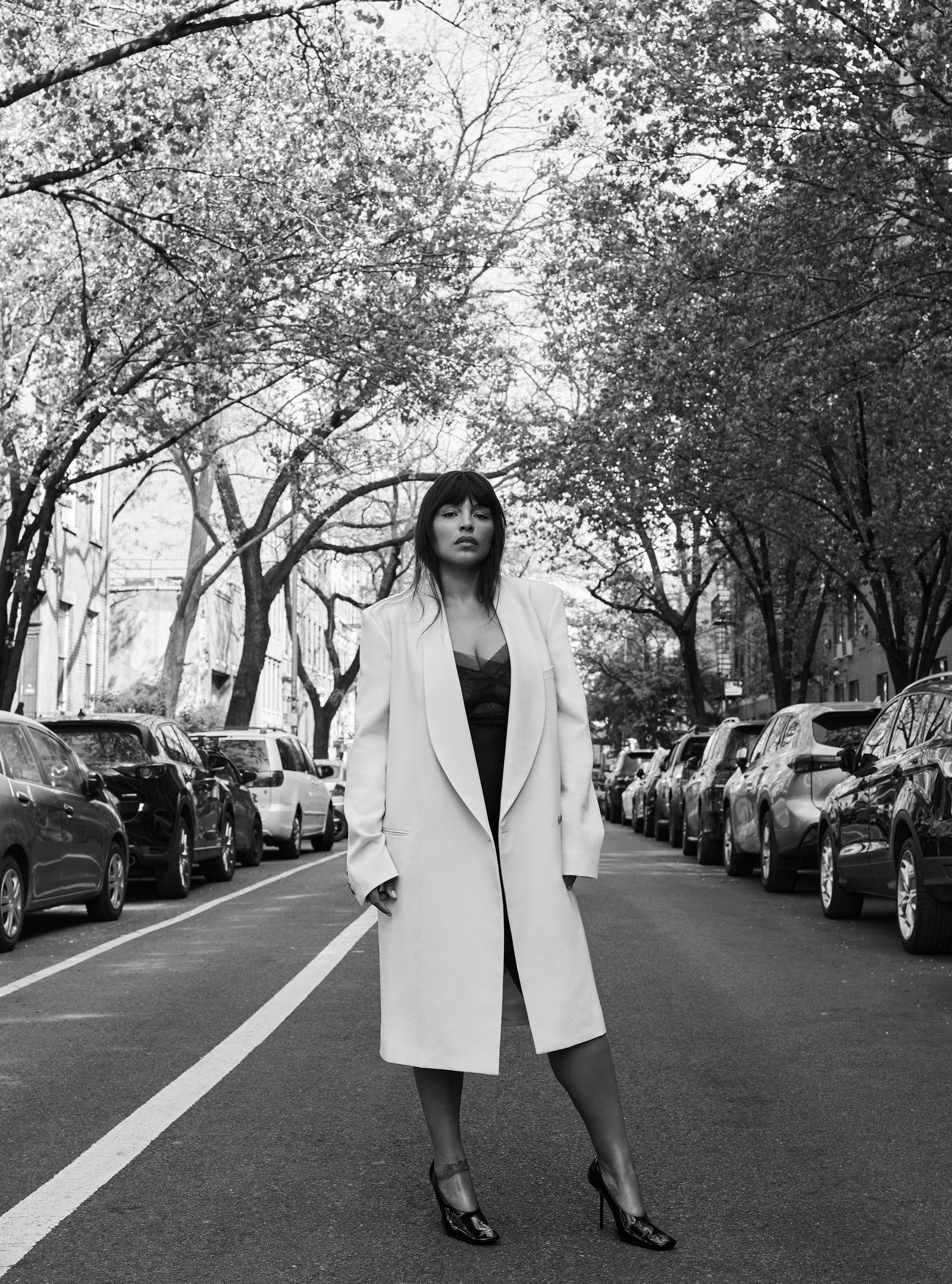 “我一直在寻找优雅与轻松之间的化学反应——以恰到好处的方式修饰的剪裁或结构,”贝克汉姆说。“因为作为一名女性,我知道穿上一些东西并立即感觉自己是最好的自己是什么感觉。”乌干达加拿大演员惠特尼·皮克(Whitney Peak)——将于明年出演《饥饿游戏:收割日出》(The Hunger Games: Sunrise on the Reaping)——穿着维多利亚·贝克汉姆(Victoria Beckham)夹克;victoriabeckham.com。