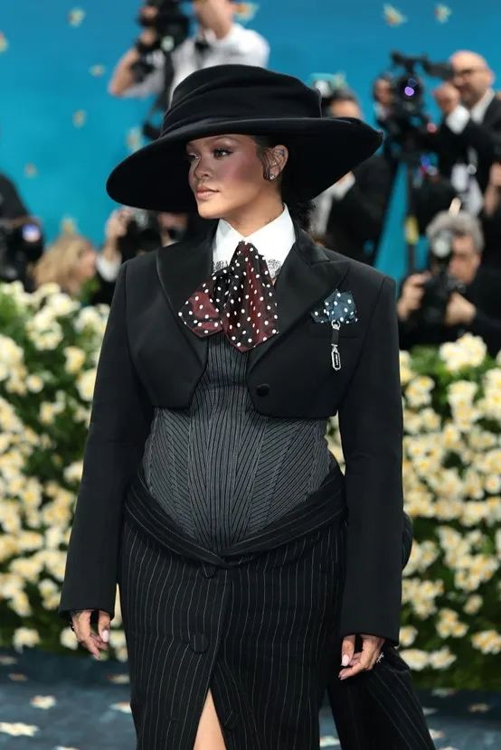 如果没有Rihanna的惊喜亮相,那还叫什么Met Gala?(就像超级碗或任何重要的名人场合一样。)在这个5月的第一个星期一,Rihanna身穿一条剪裁西装裙现身红毯,巧妙展露孕肚,头戴一顶Marc Jacobs设计的大檐帽。