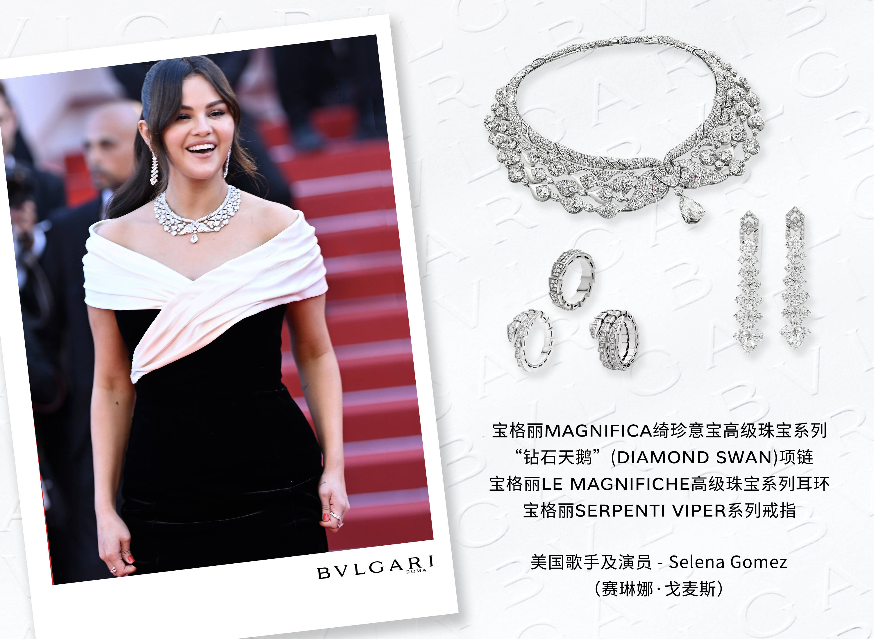 美国歌手及演员赛琳娜·戈麦斯(Selena Gomez)佩戴宝格丽高级珠宝