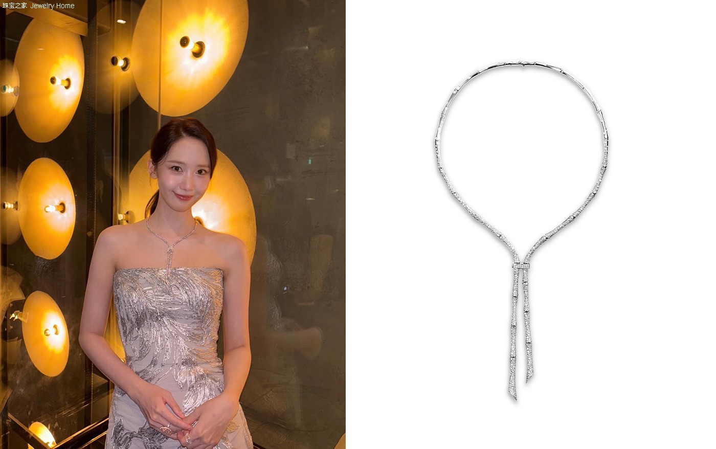 作为当晚的压轴造型,允儿以Qeelin限量版Bamboo长款项链隆重登场,这款匠心杰作由超过 660 颗璀璨钻石精心打造,全球仅限量 88 件,华丽非凡。项链配备可替换吊坠设计,展现Qeelin卓越工艺的同时,也衬托出允儿梦幻般的优雅气质,兼具个人风格与永恒魅力。