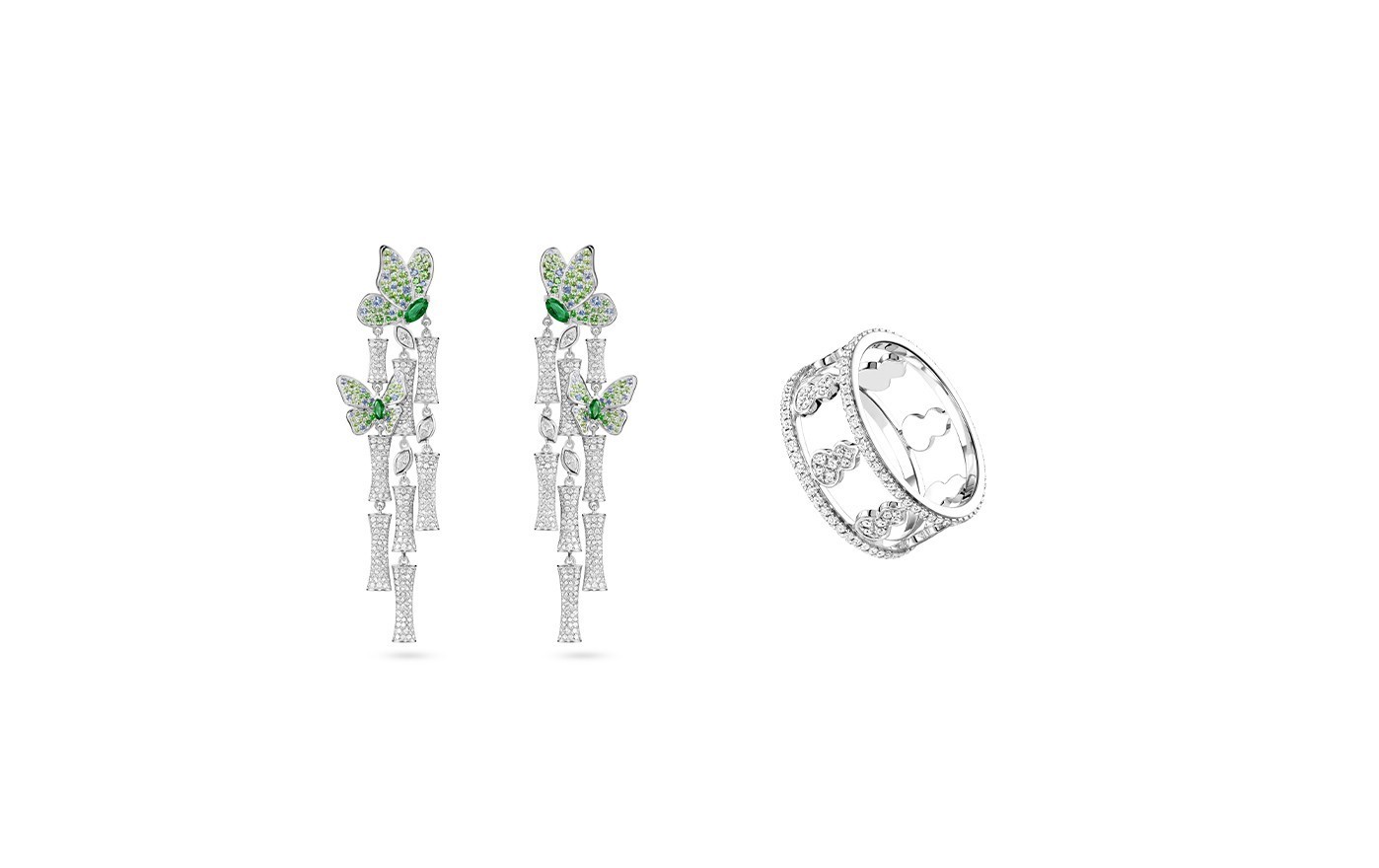 Qeelin 麒麟 Bamboo高级珠宝系列 18K白金镶嵌钻石与祖母绿、蓝宝石、绿石榴石 Butterfly耳环