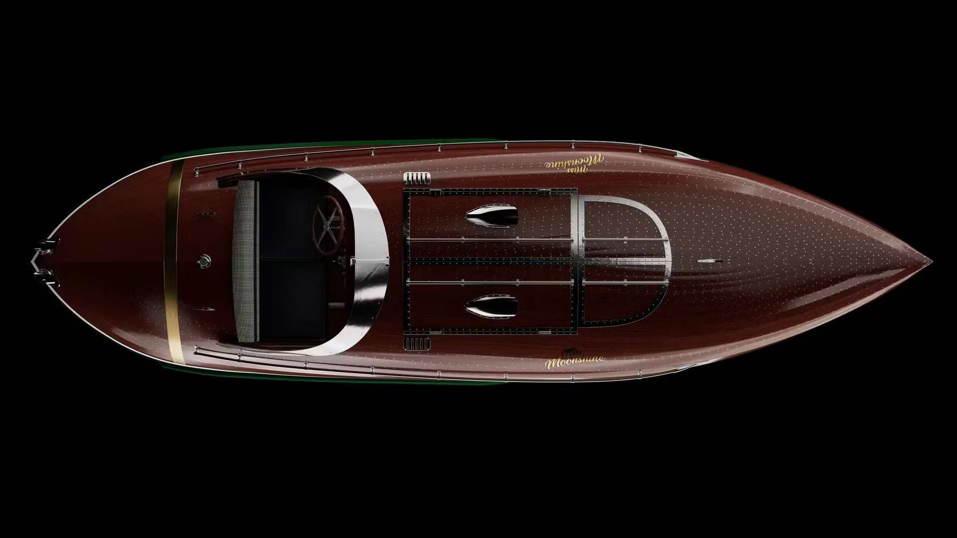 Huntsman 与来自明尼苏达州的船厂 Fitzke Boatworks 联手,打造了一艘“绅士快艇”—— Miss Moonshine 。这是一艘满载 20 世纪早期赛车风格的高速动力艇,采用定制粗花呢装饰。船长 23 英尺,采用桃花心木和西班牙雪松木打造,搭载手工制作的 5.7 升 V8 发动机,伴随坚韧的航海级粗花呢面料,足以抵御海浪。Fitzke 甚至还找到老式缝纫机来缝制内饰,只为达到与 20 世纪 20 年代原版船艇相同的工艺水平。